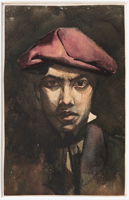 Toorop, 'Zelfportret met rode baret', 1881, waterverf op aquarelpapier,